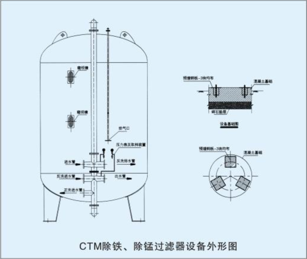 CTM除鐵、除錳過濾器適合中小城鎮、農村供水、工礦企業自來水源的地下水除鐵及工業用水軟化,除鹽工藝的預處理。